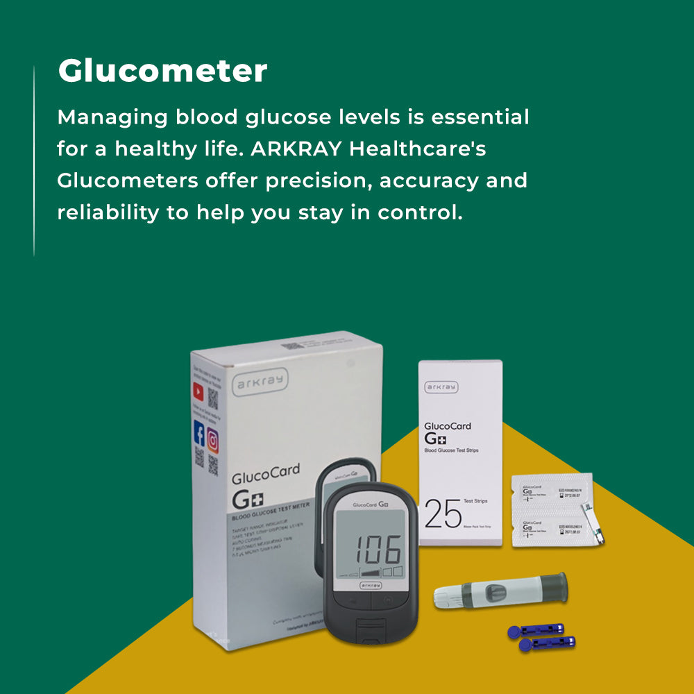 ARKRAY Glucocard G+ Blood Glucose Monitor with 10 Test Strips | Free Sugar Free Gold+ 25s Sachet Pack | Accurate & Easy Diabetes Monitoring